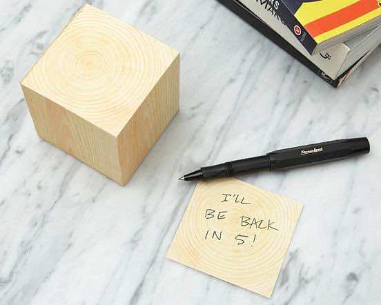This faux wood grain cube is designed by Kenjiro Sano of Mr_Design, Inc., Japan. Each note is printed with an identical wood grain pattern that makes an entire stack look like a finely hewn block of wood. You can get onehere