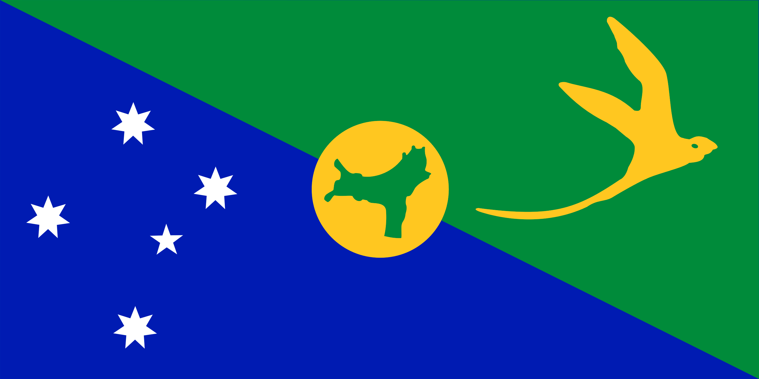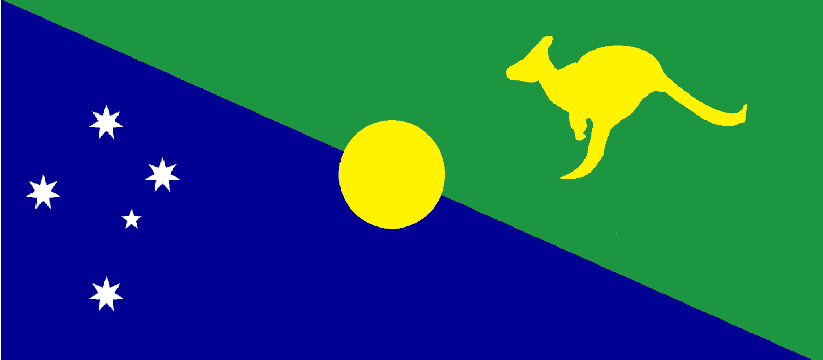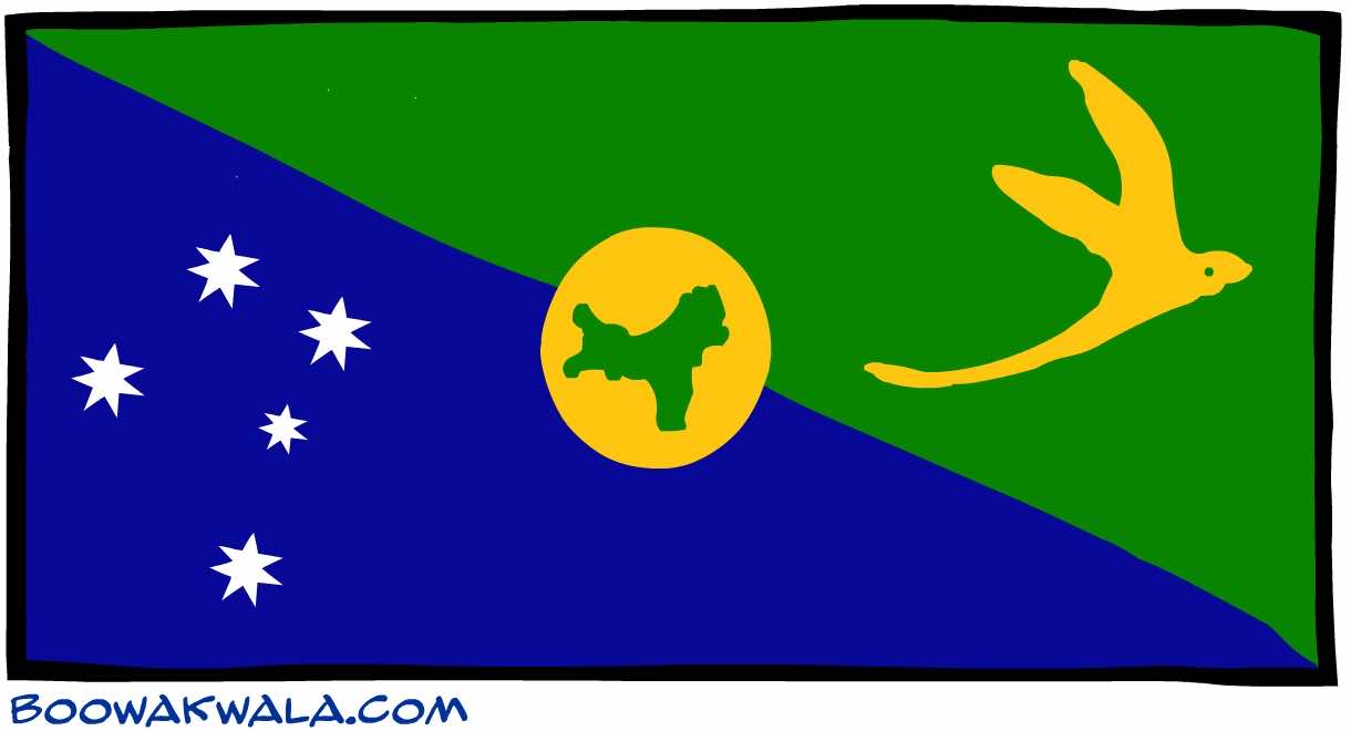 圣诞岛的旗帜有蓝色和绿色的背景,从最上面剩下的角到最右边。这些颜色分别表示陆地和海洋。东南十字星座似乎在国旗的最后,以同样的方式显示在澳大利亚国旗上。在右上方,神奇的金色水手禽,六种白尾热带鸟之一,似乎是。它被认为是该岛的象征。最后一个设计似乎是在国旗的中心一个奇妙的金色圆盘是该地区的地图在绿色。磁盘本身最初只是为了平衡地图的绿色,但已经与勘探行业联系在一起。