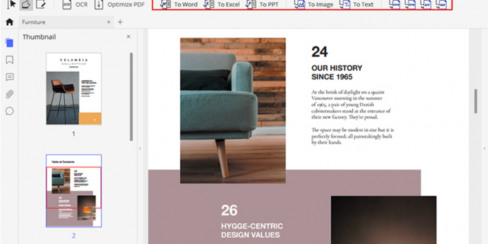 除了能够从其他格式转换为PDF,您还可以将PDF转换为其他各种格式,例如MS Office,电子书,图像,文本,HTML5和其他文件类型。此功能的目的是使用户允许以本机格式编辑内容。例如,可以将表和图形转换为Excel,可以将Web内容转换为HTML等等。