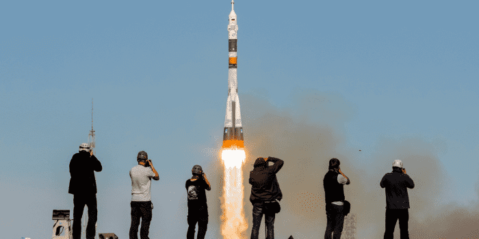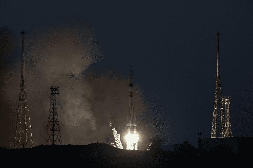在莫斯科和华盛顿的合作中,两名宇航员和一名宇航员乘坐联盟号火箭前往国际空间站。