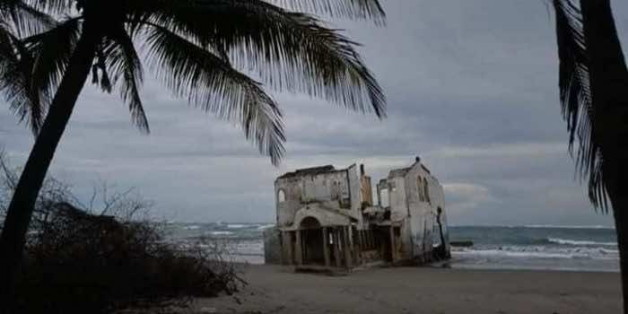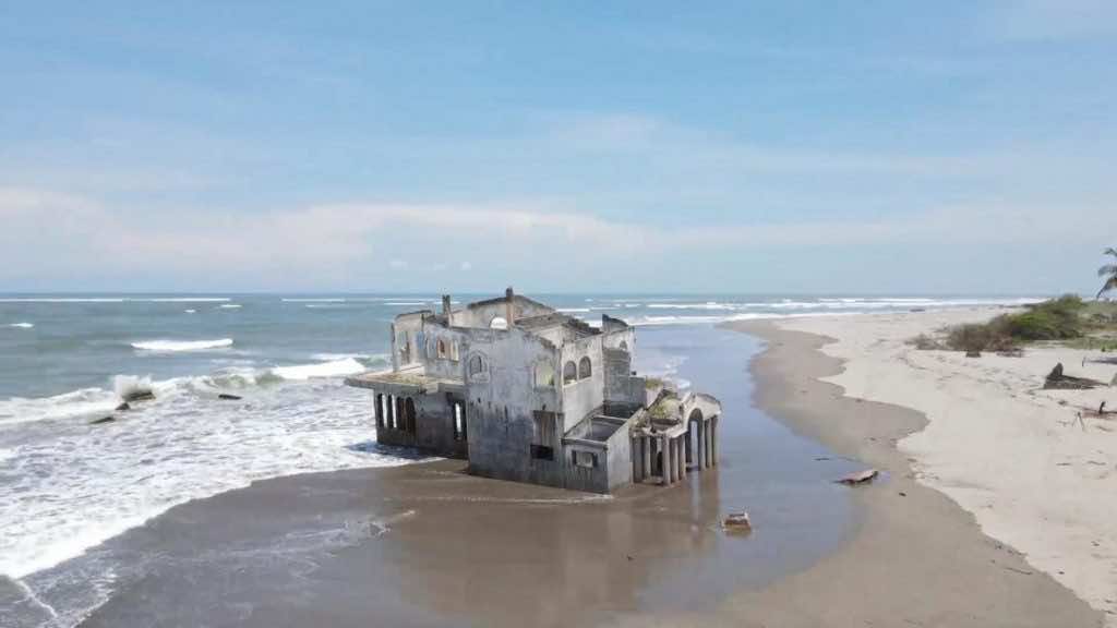 当地的报纸La Prensa Grafica在该报纸上发表了最后一份报告。这座别墅是该地区的一家酒店,名为Ventura酒店,通过在海滩上建造建筑物,它具有创新性和吸引力。但是,飓风完全影响了它,并将整个结构带走了。据信,大卫的大明星将其变成了教堂一会儿,但又被抛弃了。该酒店最终受到海平面上升,空中盐和飓风的影响。当地的孩子讲述了别墅中有一个高个子鬼魂的故事。