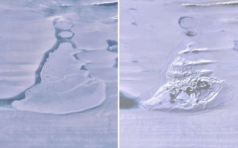 研究人员现在已经在《杂志》中发表了他们的发现的研究,地球物理研究信, 上周五。作者使用卫星的图像来估计事件实际发生的时间。他们将窗户缩小到6月的一周或更短的时间。湖消失将火山口留在其位置。这种表面抑郁症称为冰多琳。