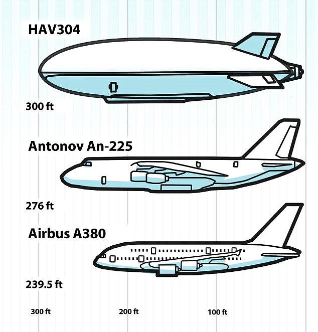 下面是Airlander 10的比较,最初命名为HAV304,也被称为飞行的屁股安-225和空客A380(其尺寸是标准A320的两倍):