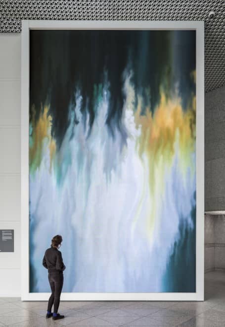 透明前门的增加使行人能够瞥见内部动态艺术品的一瞥,因此,该建筑物也引起了Passer-Bys的关注。该项目的首席设计师Ed Purver描述了该项目,并说:“我们的自定义软件分析了每个视频以进行移动对象,因此像人行走或驾驶汽车这样的瞬间成为慢慢创建每个抽象的“笔触”。随着每个视频与下一个视频相撞,新的作品实时展开,从字面上创造了数千种可能性的数字艺术品。”
