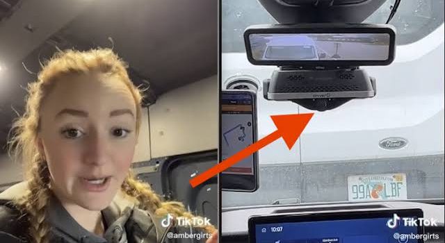 TikTok,亚马逊司机解释了亚马逊送货车上的四个摄像头监视她开车,包括一个前置摄像头,两个摄像头的车,和一个客舱相机,面临着司机。