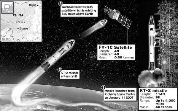 2月5日,中国使用名为DN-3的远程导弹拦截器在太空中摧毁了一枚目标导弹。这是中国第二次成功在太空中发射导弹。2010年,朝鲜使用类似DN-3的中段拦截弹摧毁了外大气层中的目标导弹。导弹距离地球表面大约62英里。2010年的试验使中国成为世界上第二个发展命中杀伤大气层外导弹防御能力的国家。首先是美国。