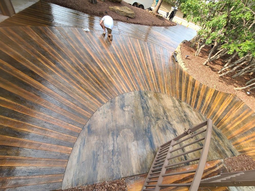 正如你所见,他混合了不同的着色混凝土颜色,创造出完美模仿木材的纹理。这对于真正的木头不能使用很长时间的房间或车道是很好的。