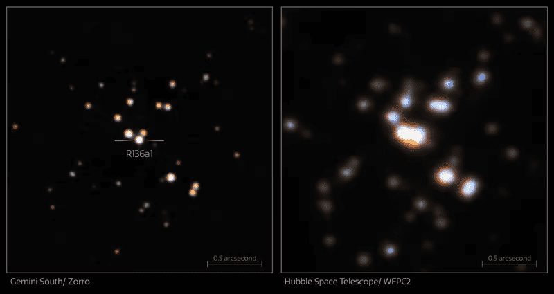 将所有这些镜头组合在一起后,就可以生成精确且“最清晰”的图像。因此,使用散斑成像方法,该团队最终成功汇编了这项研究的结果,结果显示,这颗大质量恒星的质量在170到230个太阳质量之间。这个结果是出乎意料的,因为先前关于这颗大质量恒星质量的近似值明显大于这个结果。研究小组说:“这也可能表明,可能的恒星质量上限比以前认为的要低,这意味着某些类型的超新星会更罕见,这反过来又会影响宇宙中金属的丰度。”