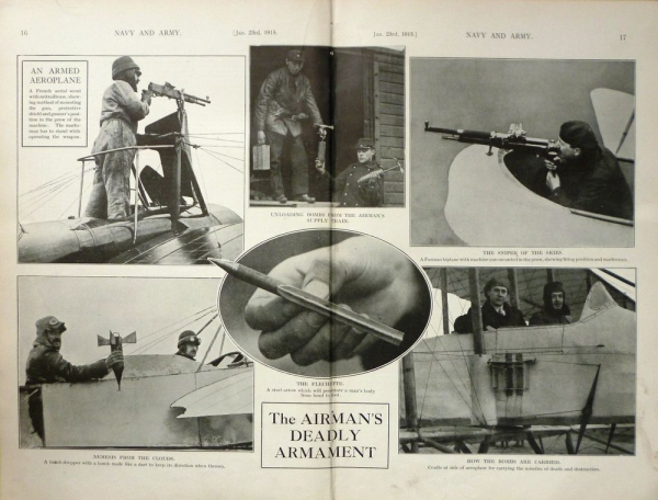 该武器是在1915年第一次世界大战的早期阶段开发的,当时还没有开发出适当的杀伤武器。小圆面包有五英寸长,一端削尖了半英寸。剩下的4.5英寸被加工出来,这样武器就有了一个“X”的横截面。然后,这些箭被装在500只的盒子里,放在驾驶舱的一个洞里。当飞行员想要释放他们时,他只需在一群敌人士兵前拉一根绳子。他们一次可以运送500平方码的货物。