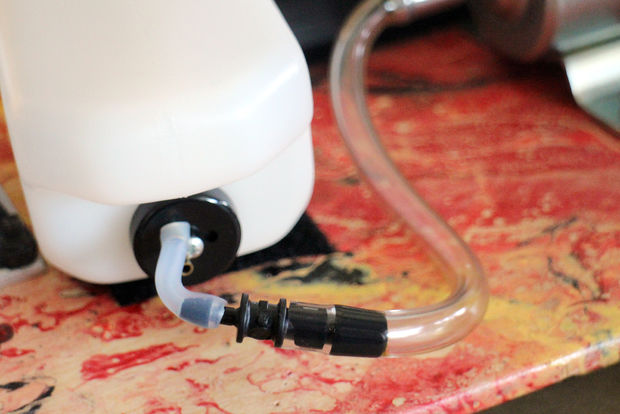 在你将所有东西永久地放置之前;安排所有的组件,他们属于看他们是否完全适合没有造成任何阻碍的车轮。泵和罐的位置会有点复杂,所以要确保乙烯基管可以连接到罐没有急转弯。