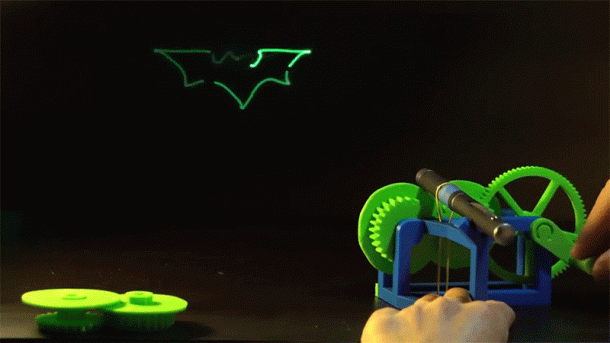 您可以使用可用的文件为自己打印小发。Thingiverse。它包括一系列不规则的凸轮,这些凸轮旋转,以特定图案的方式移动激光指针,制作星星,蝙蝠侠徽标,您甚至可以通过使用打印机打印自定义的3D磁盘来选择自己的图案。不过,您将需要良好的数学技能才能做到这一点。