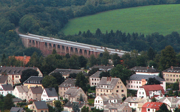 这座256英尺高的1,883英尺长的Göltzsch高架桥建造于1851年。它位于德国镇赖金巴赫·沃格特兰(Reichenbach Vogtland)以西约4公里处,是世界上最大的砖桥。