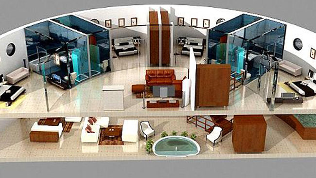 这些发射井有自己的指挥和控制中心,以及一个在现场有互联网子接入的通信中心。数字气象站的工作是获取从外部收集的信息。收容所的其他设施包括水疗中心、游泳池、健身房、图书馆、教室、杂货店和电影院。筒仓能够容纳大约70人,同时将住宅空间分为公寓,可以容纳6-10人,如果使用半层布局,则可以容纳3-5人。避难所的冷冻食品供应足够一个人吃5年。它配备了不锈钢电器和LED照明。这些小屋还拥有开阔的视野、按摩浴缸和50英寸的电视。
