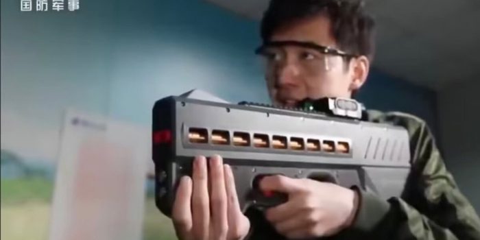 新的手持电磁炮发射控制骚乱称为CS / LW21透露了中国。枪,由中国北方工业集团公司和其他技术团队,展示了在隶属于政府部门CCTV-7在军事技术项目。