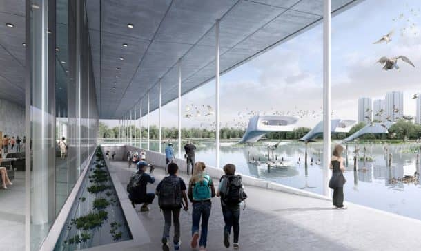 同样的原因促使天津港为候鸟创造了这个独特的湿地保护区。麦格雷戈·考索尔设计的鸟类机场将由60公顷的湿地公园组成,鸟类将在这里降落,加油,并通过飞行路线繁殖。