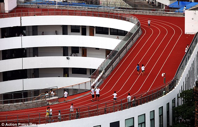你会怎么做当你没有足够的空间来构建一个跑道吗?你怎么样采取同样的方法,已经由一个小学在中国?学校坐落在浙江天台,房子200米跑道。跑道已建成学校的屋顶上。