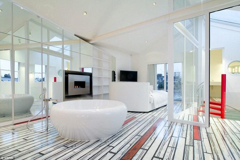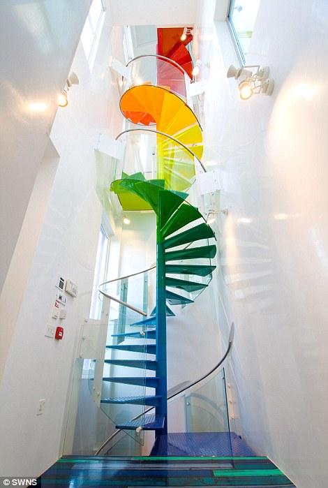 这座房子被称为彩虹之家,已在租赁市场上列出,价格为每月15,000英镑。房子非常惊人,因为其中包含的功能包括幻灯片,使您可以进入客厅。一旦AB Rogers完成了滑梯,他就以4颜色和完全协调的地板以及一个中央螺旋楼梯以及一间主卧室的床铺,带有一张可以旋转360度的床。