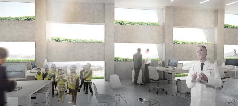 该团队的目标是赋予结构的功能和形式。该机械将继续放置在主楼内,但是,该结构将在一侧扩展并降低,以适应指定用于管理和游客中心的区域。该结构将被抬高,以达到烟囱的顶部。还将安装将延伸到顶部的电梯。电梯的内壁将是用玻璃创建的,从而使游客可以在途中窥视植物的内部工作。