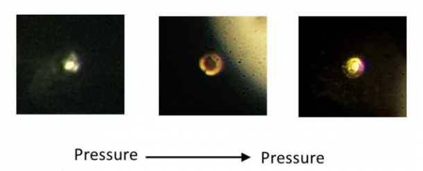 哈佛大学的一组研究人员于1月29日发表了这一观察结果,他们说,当氢气在5.5开尔文或零下450华氏度的温度下挤压钻石时,提高压力会导致透明的氢气变黑。当压强是大气压强的500万倍时,氢开始反射。研究人员声称,这证明了氢原子可以像金属一样排列成规则的三维结构。