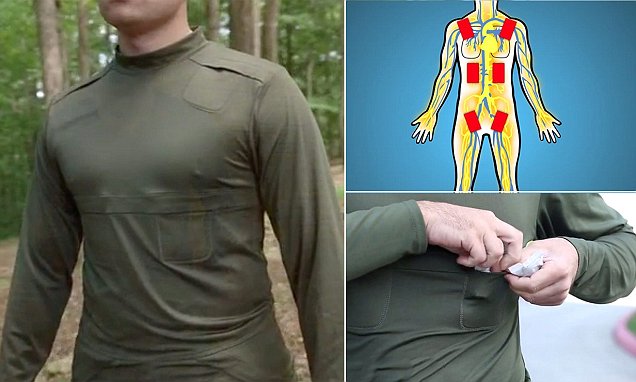 这位企业家设计了这件衬衫,上面有六个口袋,可以在踢足球的同时,不必求助于“分层”,这限制了他的运动。衬衫的六个口袋含有热化学包,并放在主要的血管上,因此用户的循环系统将变成加热网络。