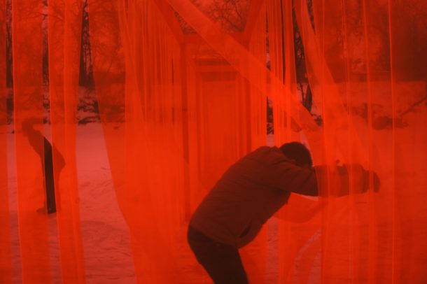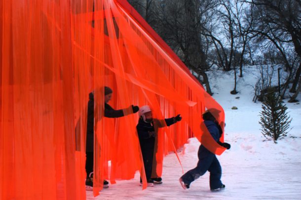 从视觉上看,白色背景上的亮橙色结构非常引人注目。但真正获奖的是,这幅精心设计的艺术作品让人们在穿过橙色条纹时思考这个问题。这种半透明的材料使人与墙的另一边难以区分,这是一种隐喻性的陈述,说明皮肤的颜色并不能定义我们。