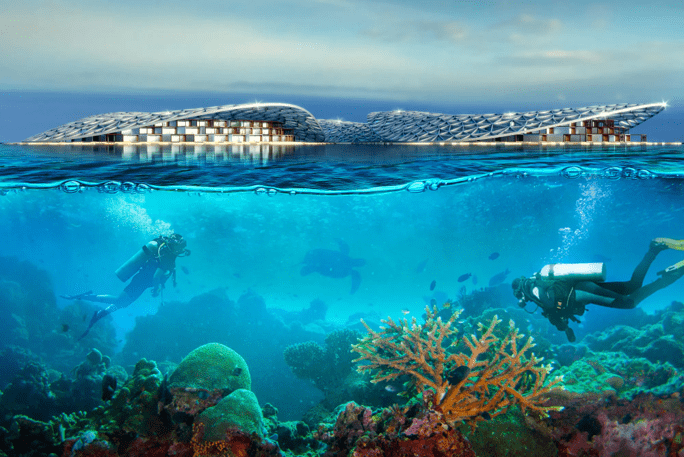 市区,背后的开发项目,提出建设迪拜珊瑚礁,漂浮的海洋研究所和实验室生活了海洋修复和生态旅游,这将支持一个人工鱼礁建设再生迪拜的沿海生态系统,并保护其免受风暴。项目也旨在创造一个可持续发展的生态旅游产业,提供独特的海洋体验,同时促进海洋研究、保护和教育。