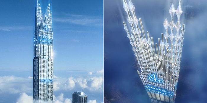 根据设计的繁荣在迪拜,屡获殊荣的阿联酋企业宾哈蒂(Binghatti)与雅各布公司(Jacob & Co.)合作,为这座摩天大楼提供了美丽和才华。图片显示,这座塔的形状是一个细长的、闪闪发光的形状,最后从云层中伸出一个壮观的、装饰华丽的王冠。特别是建筑的顶部,是Jacob & Co标志性的高端建筑,天际线中完美切割的钻石,是两家公司标志性设计精神的大胆和纯粹的体现。