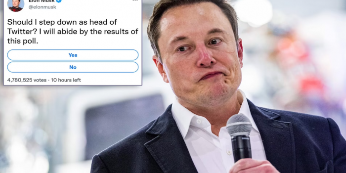 首席挖苦Elon Musk问Twitter用户是否应该辞去首席执行官希望追随他的调查结果。