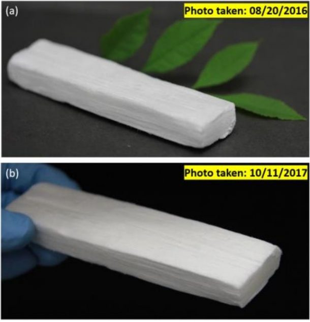 这个过程使nanowood有点类似造纸。木材被削减,同时关注其粮食然后煮在氢氧化钠和亚硫酸钠。然后过氧化氢处理以去除木质素和半纤维素。最后冻干保持木材的结构而不是混合的纸。