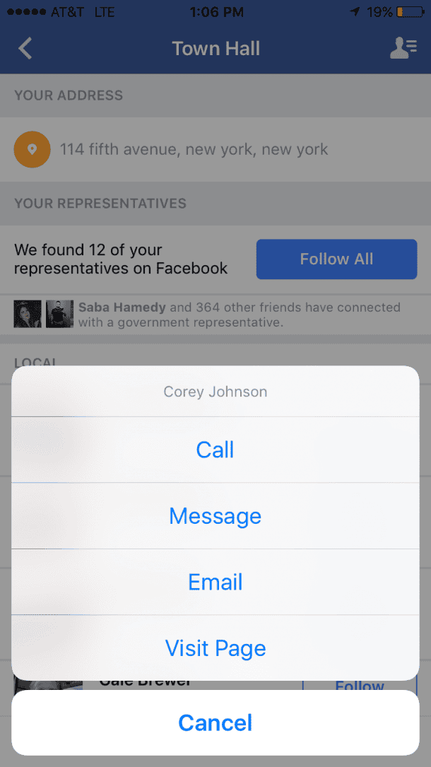扎克伯格在周一推出了最新的市政厅功能,这很可能是该社交网络迄今为止最具影响力的新增功能。这个选项可以让你根据你的位置找到当地政府的代表,找到他们的粉丝页面,甚至联系他们表达你的意见、投诉或建议。