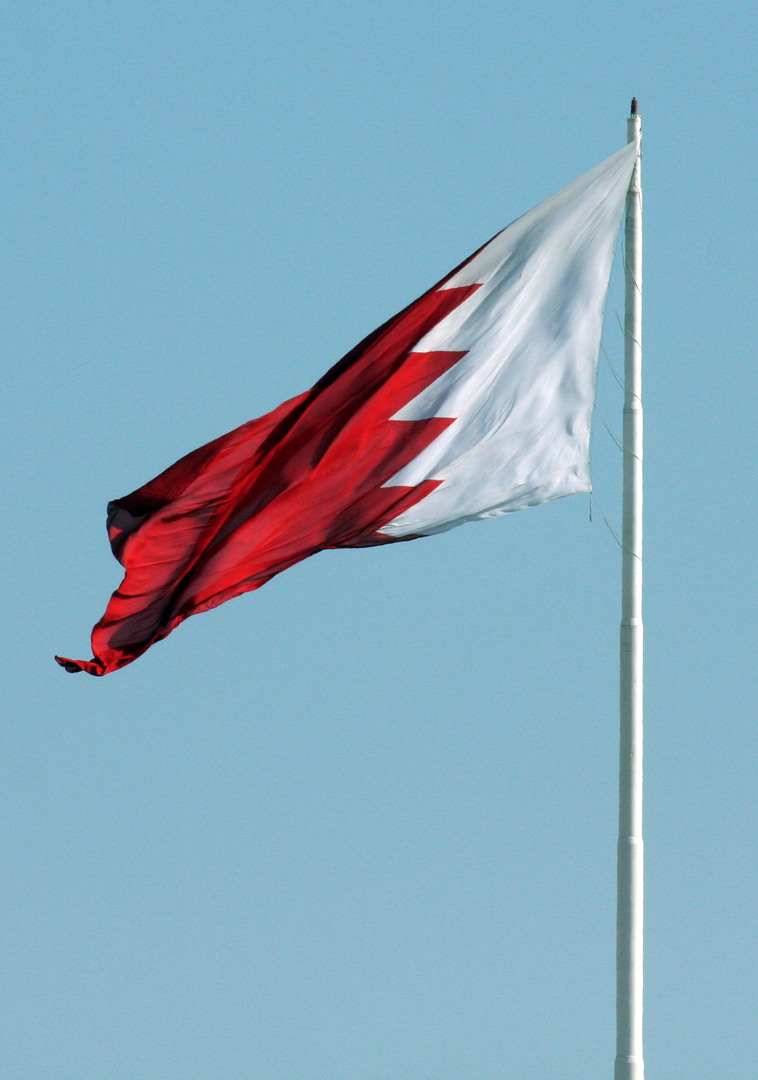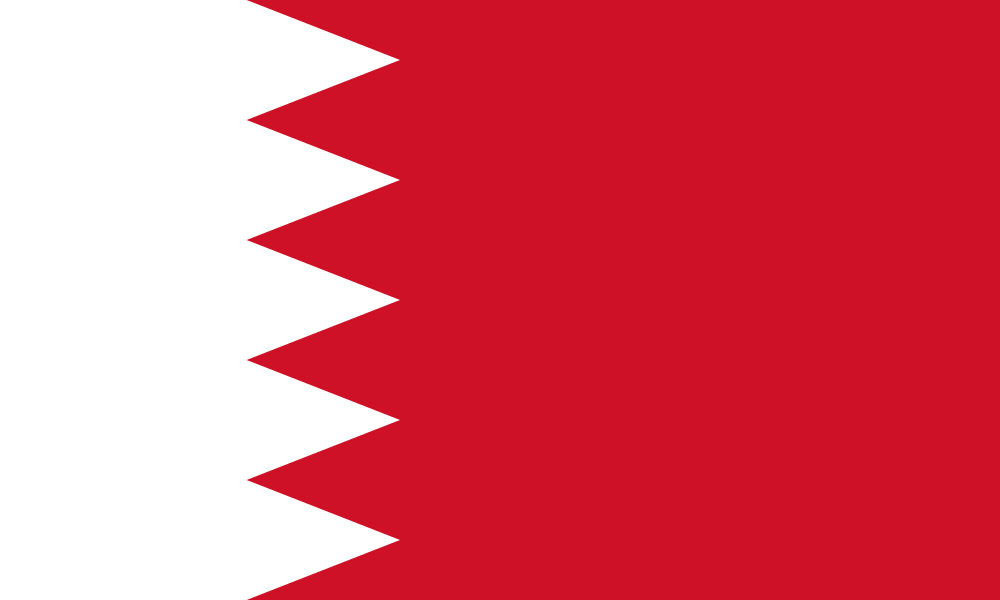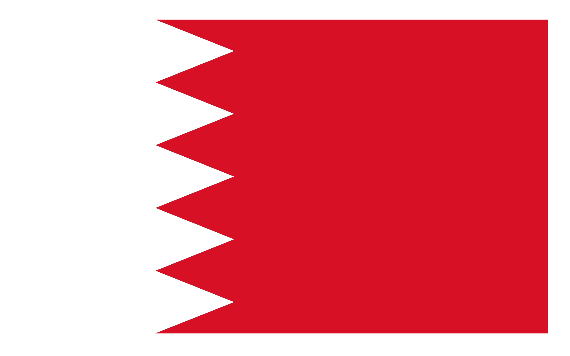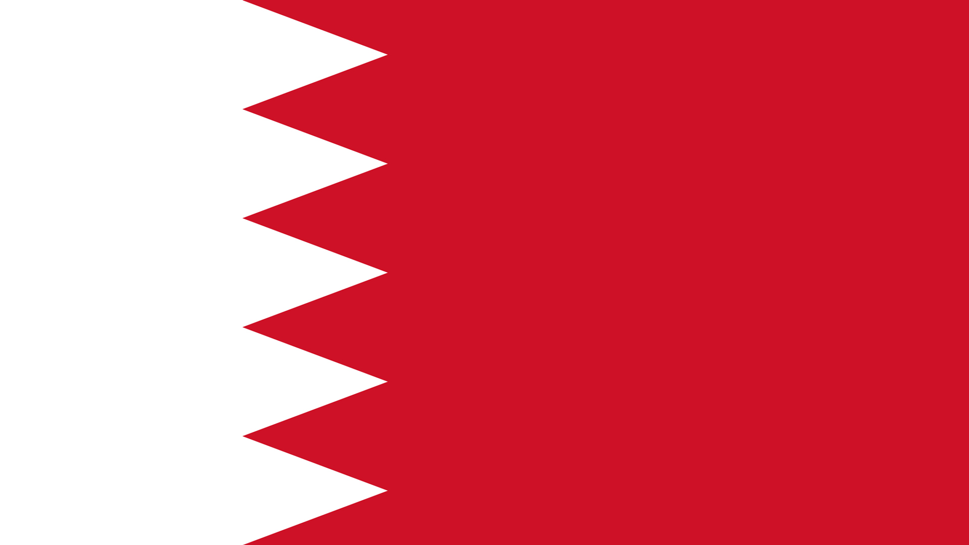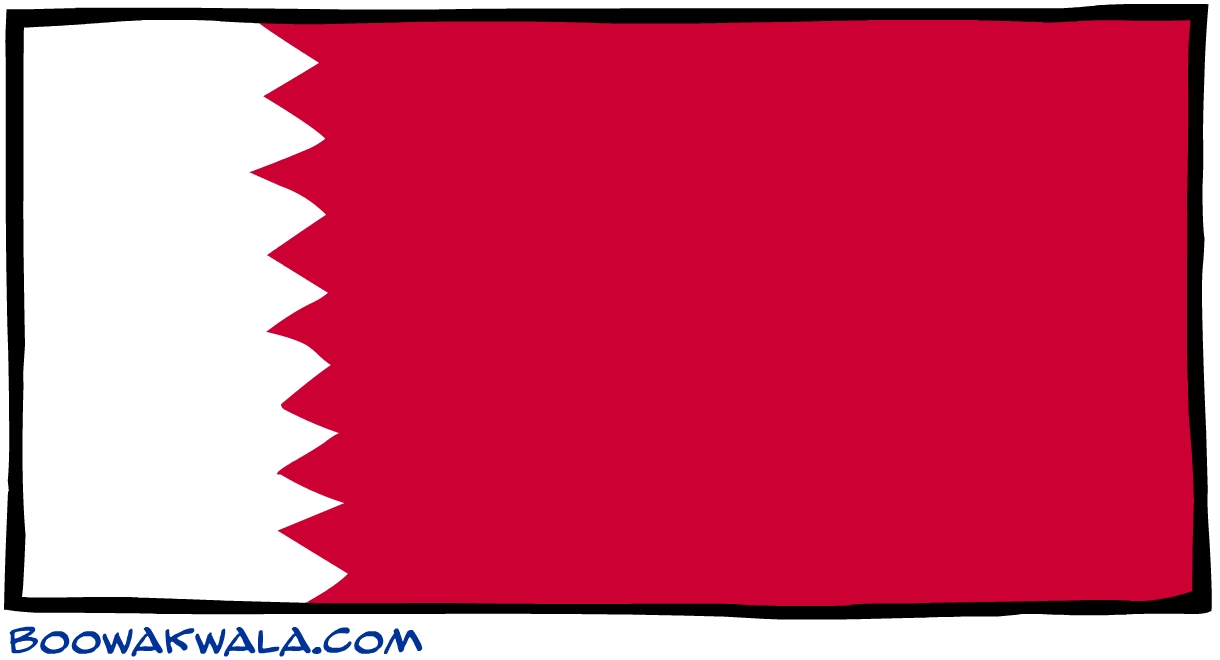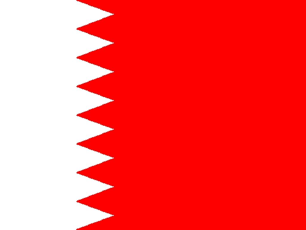 巴林的国旗包括一个白色的群体,从右边的红色分为五个三角形,并提供了锯齿状的范围。巴林国旗很像卡塔尔的国旗,有更多的点,有更深的红色。白色占巴林国旗的32.5%,红色占67.5%