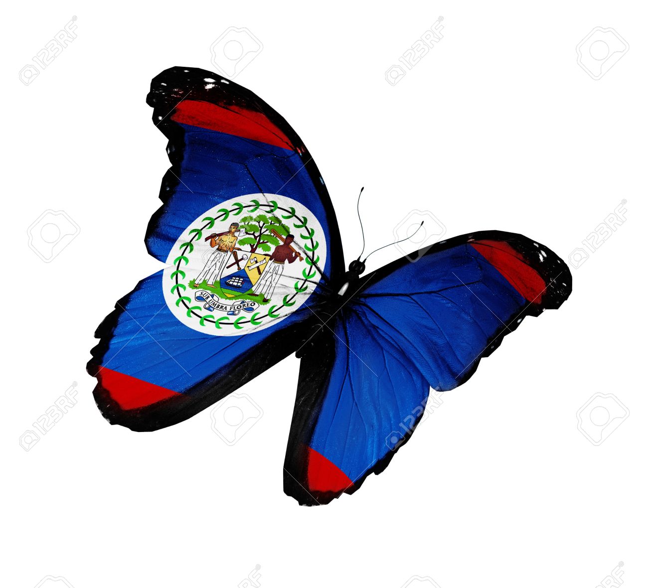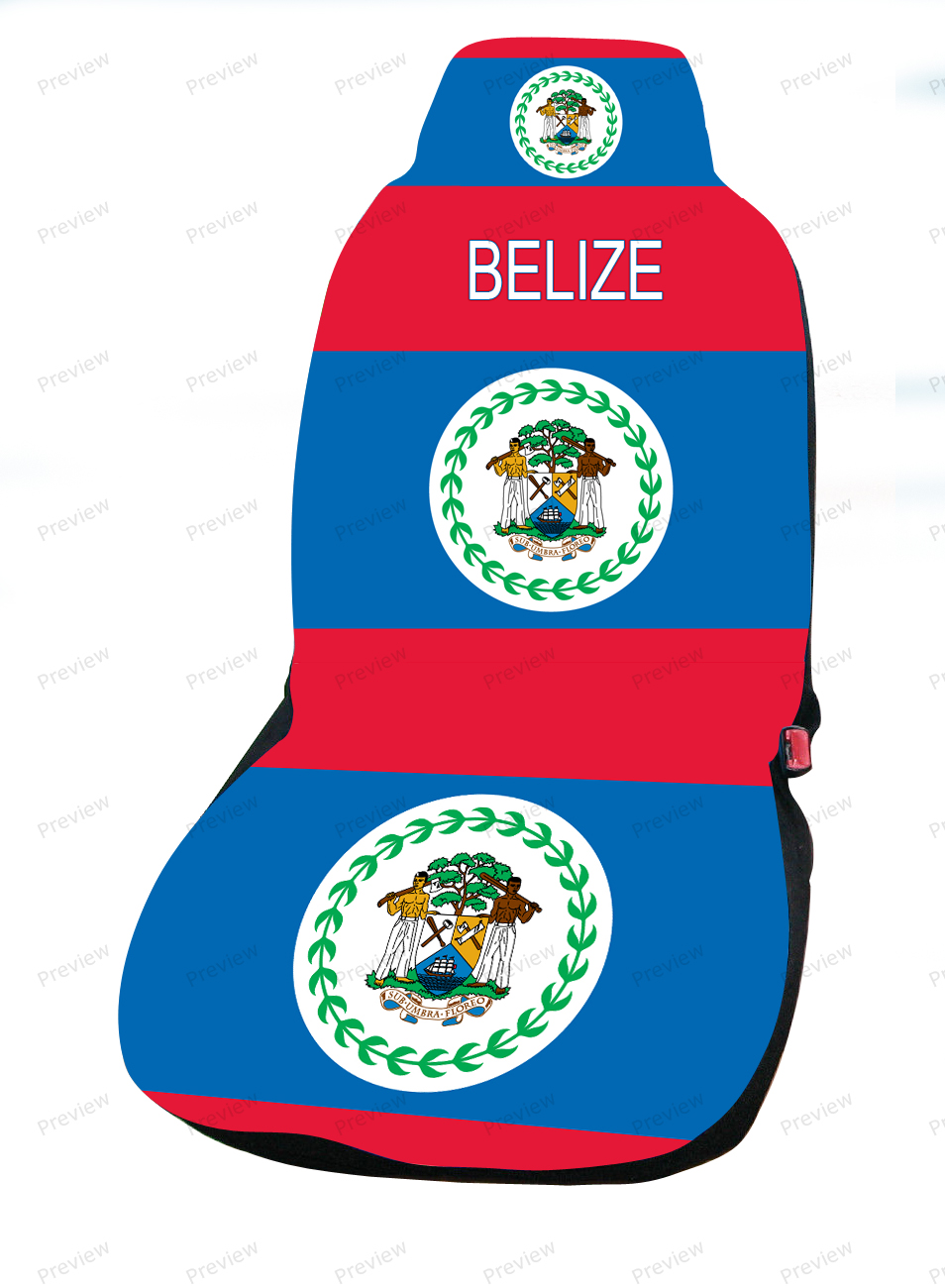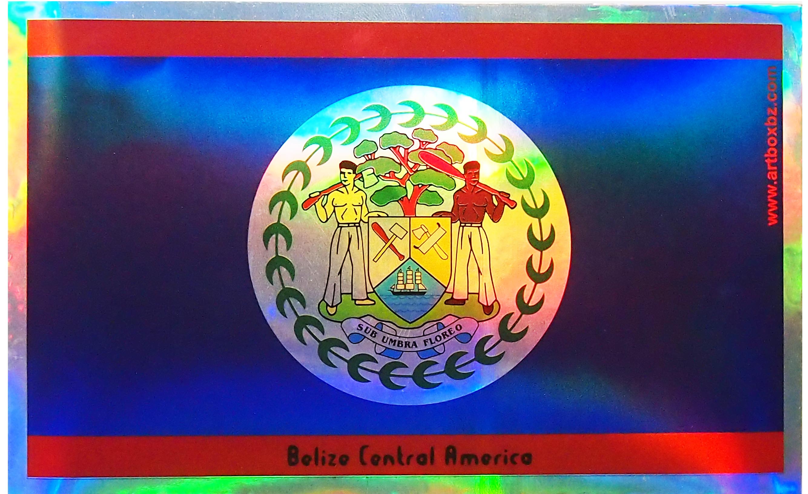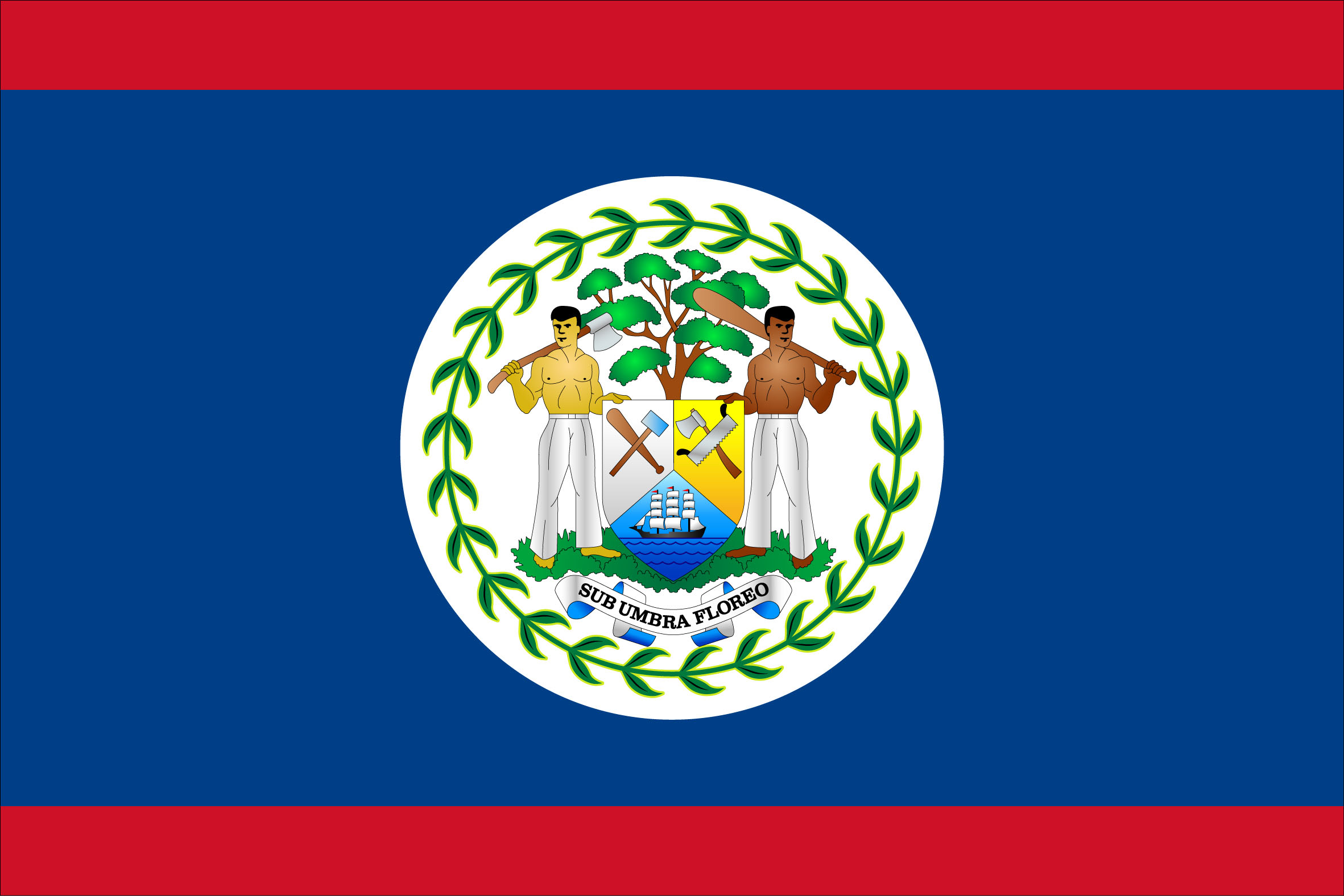 国旗的颜色是该国的民族政党,统一民主党(伯利兹)和人民统一党。1973年被承认的人民统一党曾对国旗独特的白蓝设计提出抗议。在自由的独特设计中包含了两侧的两条红色条纹。国徽是1907年提供的。蓝色是人民统一党的代表色。红色的线表示大的反对党。50片叶子组成的圆圈让我们想起1950年,人民统合党执政的那一年。