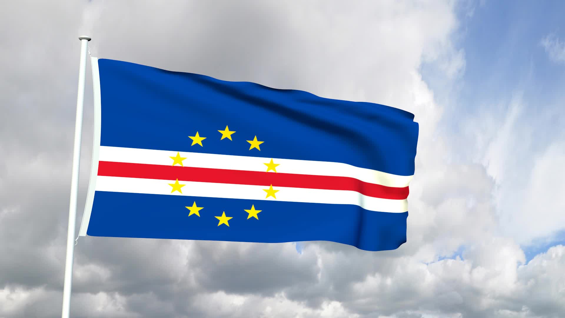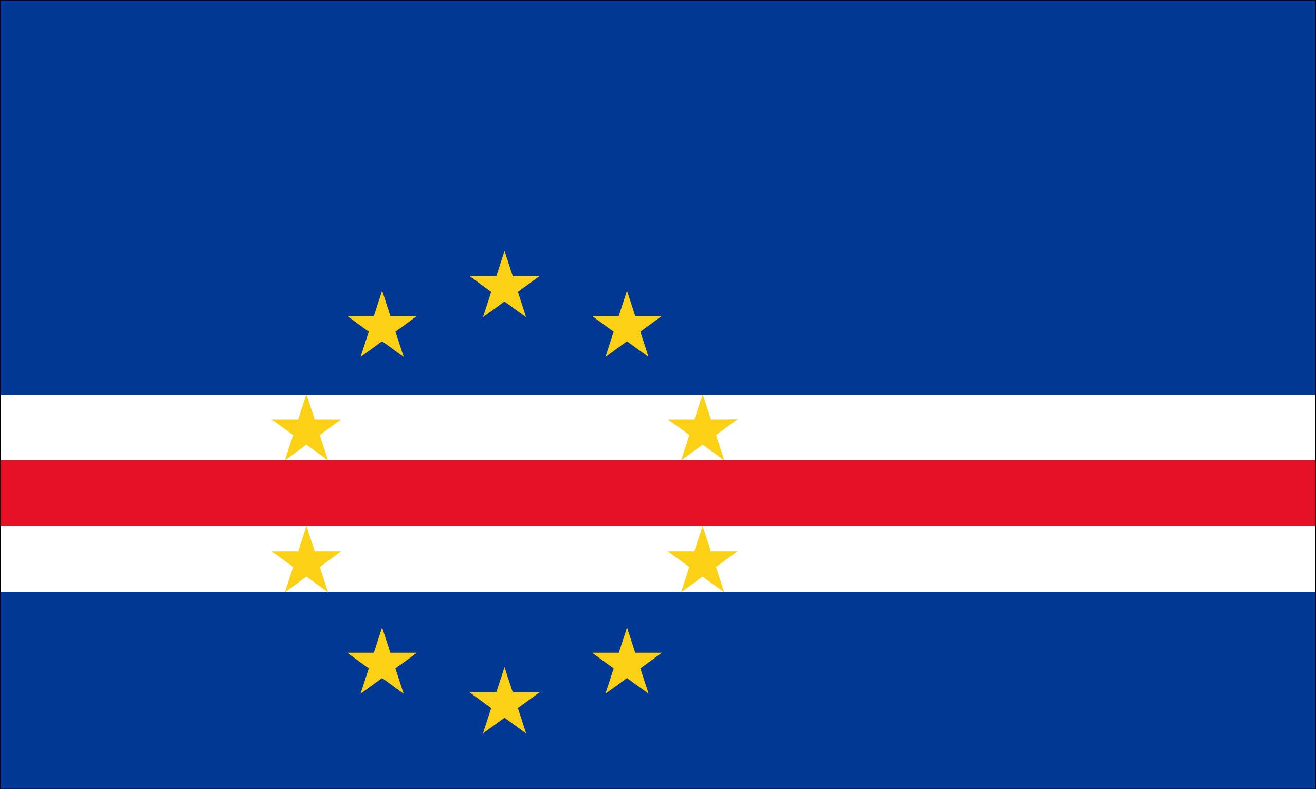 国旗上的10颗恒星表示该国的主要岛屿。红色象征着大海和天空。白色和红色的乐队象征着迈向国家发展的道路,白色之类的颜色代表了和平与红色,以努力努力。黄色,恒星的圆形发育和黑蓝色区域与欧洲的旗帜相似,拥有12颗星,而不是10星,最初是为欧洲当局开发的,但欧盟也使用了这一点。乐队的比例为6:1:1:1:3,恒星群以3/8的位置在国旗的飞行侧旁边。