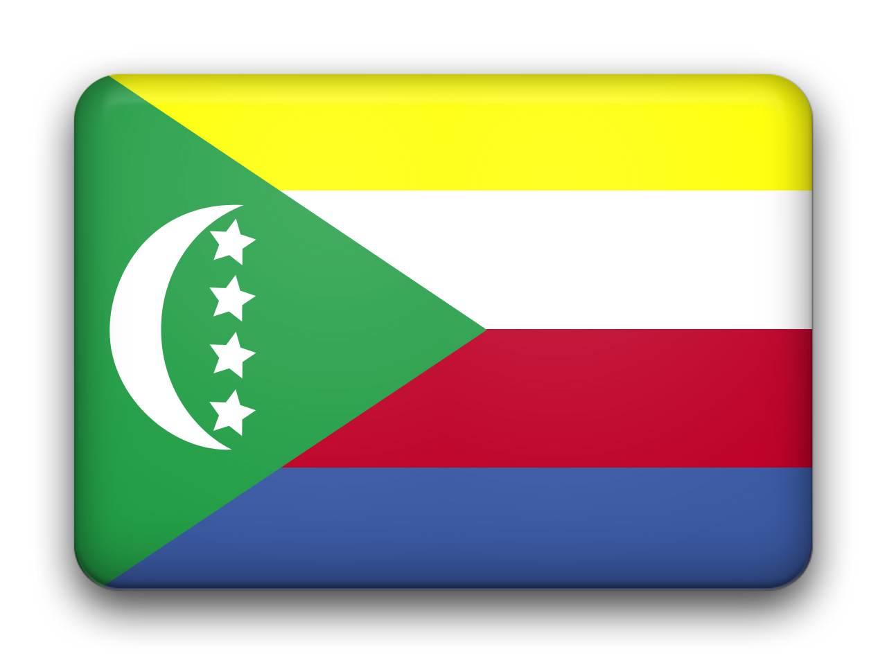 该风格包括四个白色星星和绿色背景三角形内的白色新月形。水平线和四星星表示该国的Mwali,Nzwai,Njazidja和Mayotte的主要岛屿。观察到Mayotte是法国的一个地区,但由科莫罗斯说。旗帜的四个乐队包括该国四个岛屿:莫赫利的黄色代表,白色代表,梅特(Mayotte),阿朱恩(Anjouan)的红色代表,蓝色代表蓝色,而蓝色则为格兰德斯·科尔(Grandes Comore)。明星和新月的偶像出现在伊斯兰教,这是该国爱伊斯兰教及其教义的重要宗教信仰。