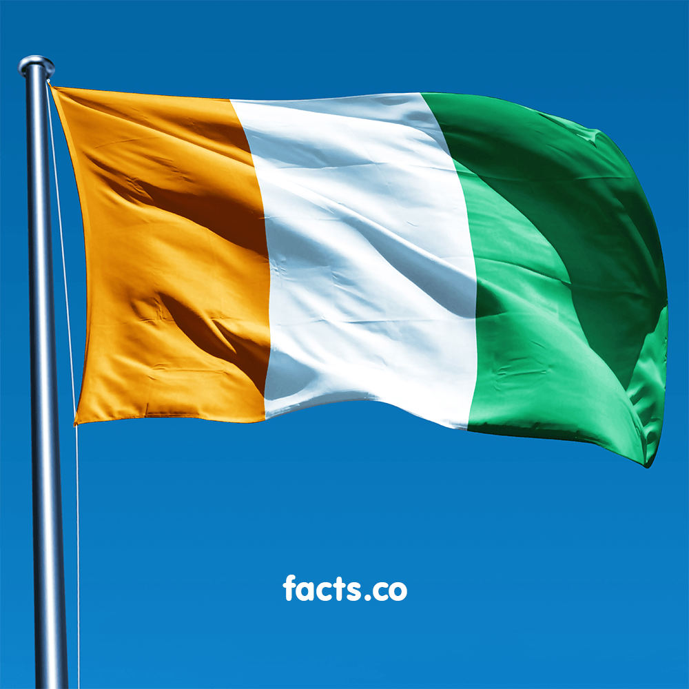 1958年,法兰西第五共和国的全民公决为当时的法国蜂巢提供了一个选择:要么独立,要么完全独立,要么成为法国的一部分。1960年8月7日,当科特迪瓦完全获得自由时,它保留了原来的国旗,没有任何变化。象牙海岸的国旗类似于欧洲的爱尔兰国旗,不过爱尔兰的国旗更长,颜色也变了——绿色、白色和橙色