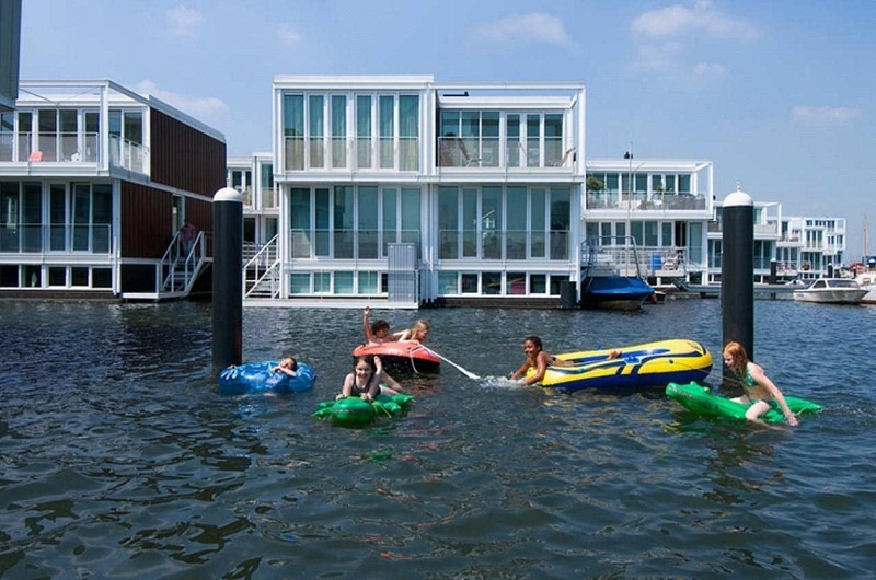 荷兰的阿姆斯特丹,饱受大规模洪水几十年来的历史。这次,架构师决定,而不是重建被毁的结构,他们将浮盖房子。而不是保护房屋不受水,他们决定建造房屋。