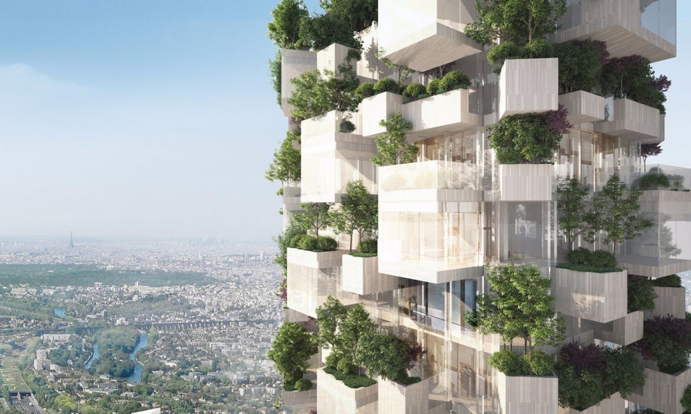 意大利建筑师斯特凡诺·博埃里(Stefano Boeri)是这些垂直森林塔楼和Forêt Blanche项目背后的主要推动力,该项目位于巴黎东郊的马恩河畔维利耶社区。该塔将高达54米,低层将容纳办公室和商业服务,而顶部将有住宅公寓。