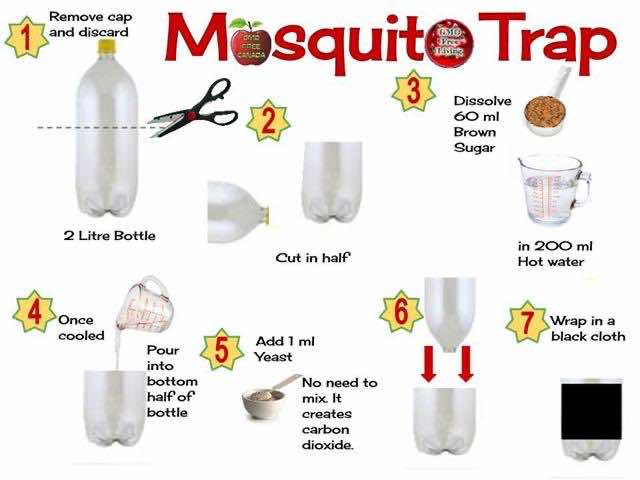 想知道这是如何工作的吗?蚊子会被人类和动物等产生二氧化碳的源头所吸引。上面提到的糖和酵母的溶液会缓慢地产生二氧化碳,蚊子会被吸引到瓶口,最终进入水中。