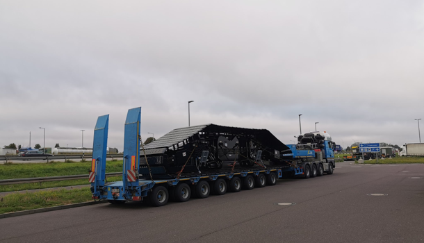 似乎机械被从奥地利到汉堡,德国或荷兰鹿特丹。它看起来就像一双巨大的坦克履带上的标志SpaceX。