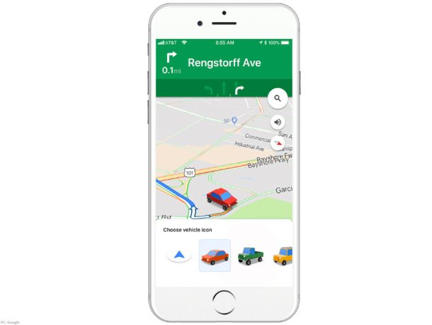 选择新的车辆,用户需要点击箭头在驾驶导航模式和选择他们想要的车辆类型出现在地图上。蓝色的汽车图标仅可在驾驶导航模式。这已经不是第一次当谷歌地图也引入了一个特性来改变蓝色箭头图标。以前,还介绍了马里奥购物车马里奥的一天2018年3月21日。到目前为止的特性是不能使用Android设备,但预计将很快推出。