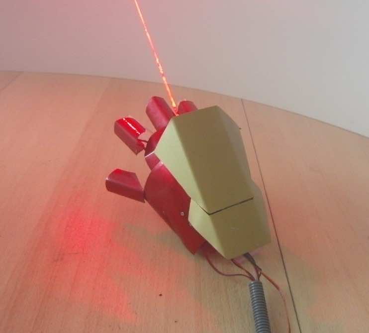 该小工具简单地通过设备主开关的简单翻转来工作。翻转它会导致小工具向其收取两个激光器的收费。充电意味着只有与五个LED的戒指以及位于棕榈激光器周围并照明的五个LED的戒指。然后,用户按单独的控制器上的三个按钮之一,该按钮是电线,以在手套的顶部抬起舱口,同时按第二个按钮会导致在舱口内部触发800兆瓦的红色燃烧激光器。