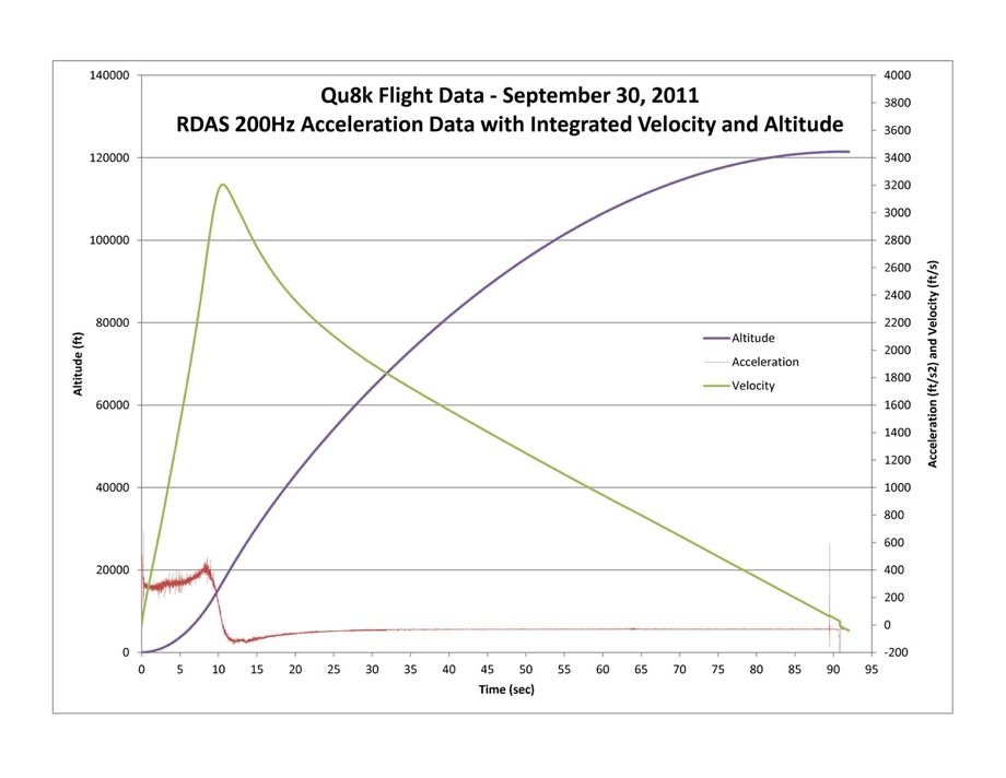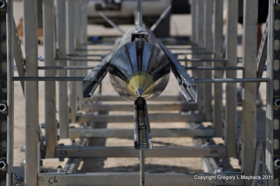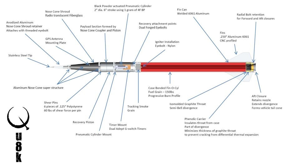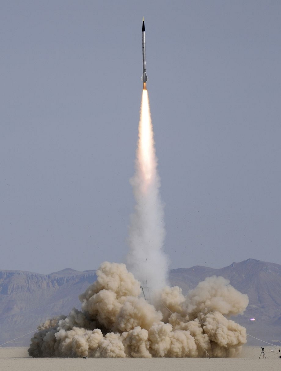 The rocket measures in at 8-inch diameter and a length of 167.5 inches and has been created from aluminum. The rocket used APCP rocket propellant to achieve the velocity of 3,200 ft/s. The rocket was embedded with 4 GPS devices, two timers and an accelerometer apart from the Go Pro Hero HD video cameras and a Flip HD camera that was able to record the complete footage of the flight.