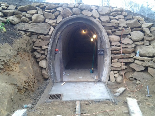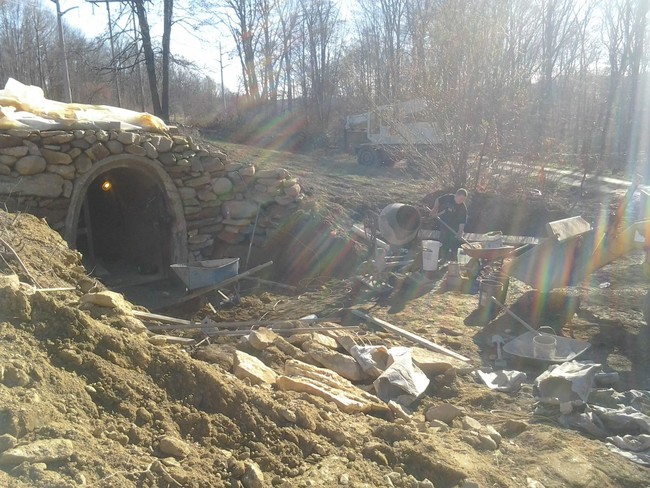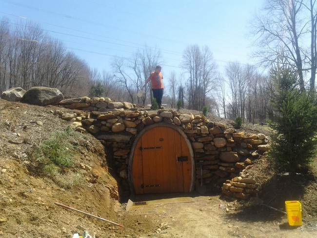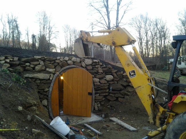 然后,他在管道的开口处建造了一堵石墙。