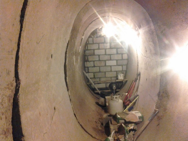 您在另一端看到的砖块是在水泥管的另一端建造的墙。