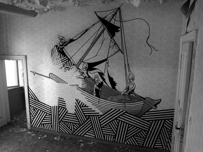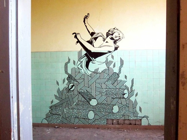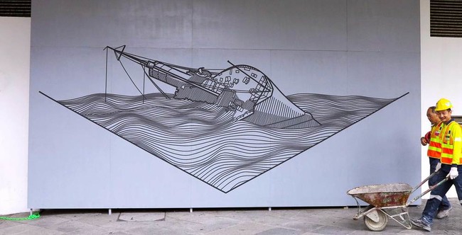 似乎要在公共场所创作巨大的壁画,需要一些真正的高级设备,对吧?错了!来认识一下澳大利亚艺术家Buff Diss,他使用非常简单的材料来完成这个任务。你准备好看看他用什么创作这些壁画了吗?他用胶带!