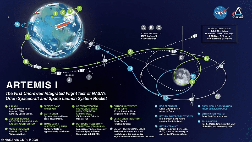 这笔41亿美元的测试飞行是美国宇航局的Artemis计划的第一阶段,以阿波罗在希腊神话中的双胞胎姐姐的名字命名。