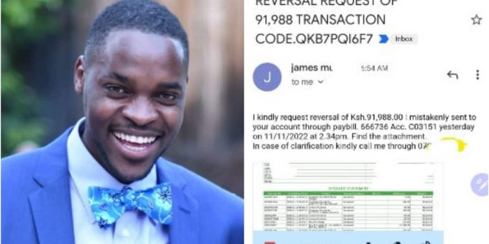 一个肯尼亚人在他的Mpesa账户上错误地收到了91,988肯尼亚先令。Tuko报道称,这名名叫基齐亚·菲尔伯特的人将资金退还给了发件人,因为他看重诚实。