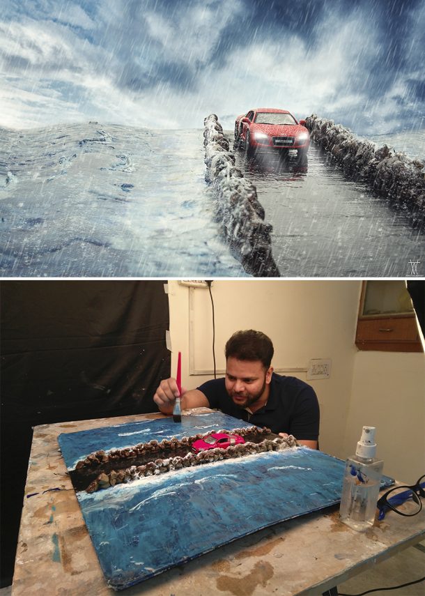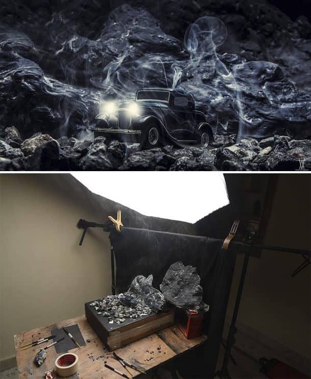 “我在一组最低资源中制作了所有我使用的东西。我通常使用灰泥制成山脉或岩石以及一些旧纸来提供基本的山坡形状。我主要使用聚苯乙烯片以及石膏和黑色油漆的混合物来制作道路。我使用的其他东西是一些聚苯乙烯片,自制叶子,用于雪和一些油漆的发酵粉。我使用了非常基本的用品,以便如果有人想尝试他们可以。我还使用Photoshop带出了美丽。因此,这非常简单且非常令人兴奋。”