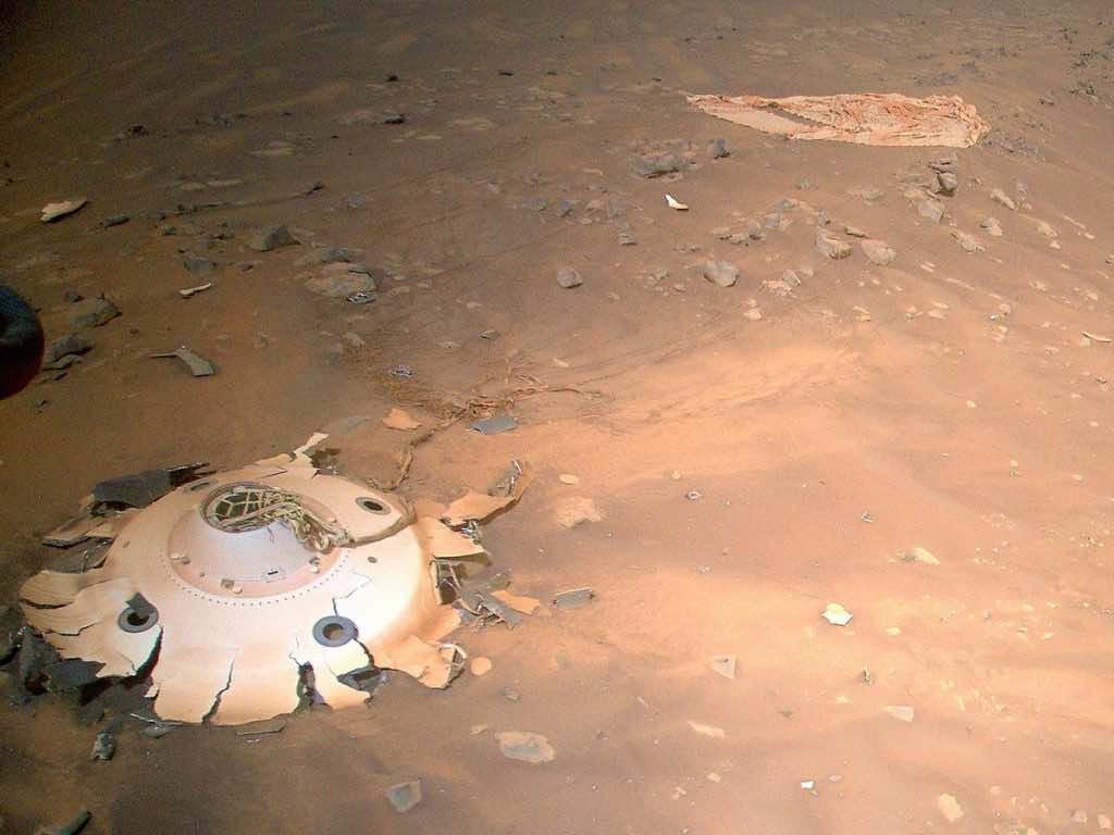 The major reason there’s so much debris left behind is from the current method of landing on the planet’s surface. To safely enter and pass through the atmosphere, a spacecraft comes clad in a disposable heatshield and deploys a parachute to slow down in time before coming close to the ground. Naturally, all that stuff gets discarded. Even active rovers leave behind bits of discarded hardware, the essay notes, like the Curiosity Rover’s wheels.