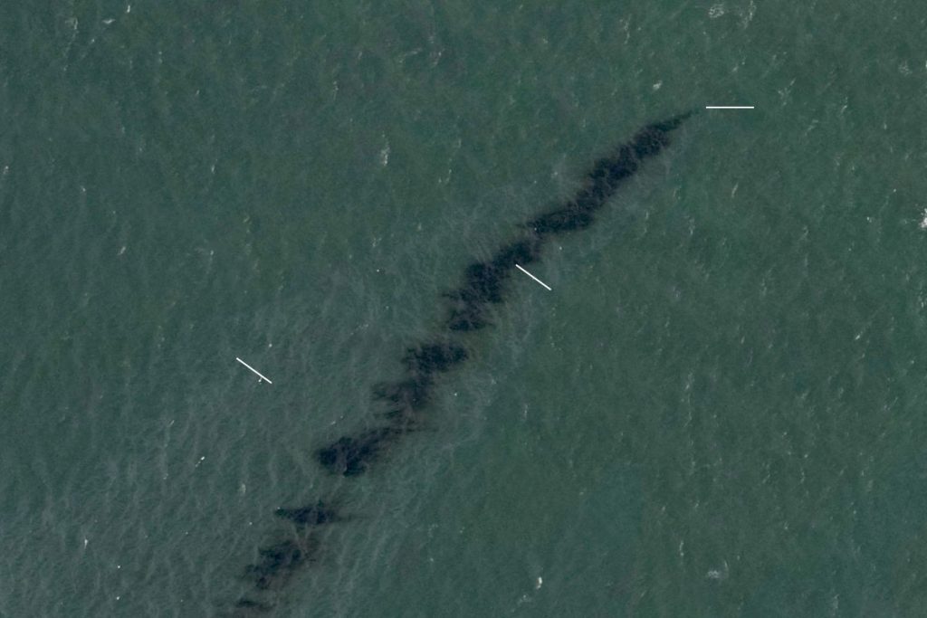 “这是一个实质性的泄漏,需要进一步调查。”位于佛罗里达州海湾的咨询公司Water Mapping的科学家Oscar Garcia-Pineda说,他领导了研究卫星和空中图像用于漏油的研究。他说:“我看到厚厚的重油的迹象,这是主要的深色特征,周围是彩虹光泽。”